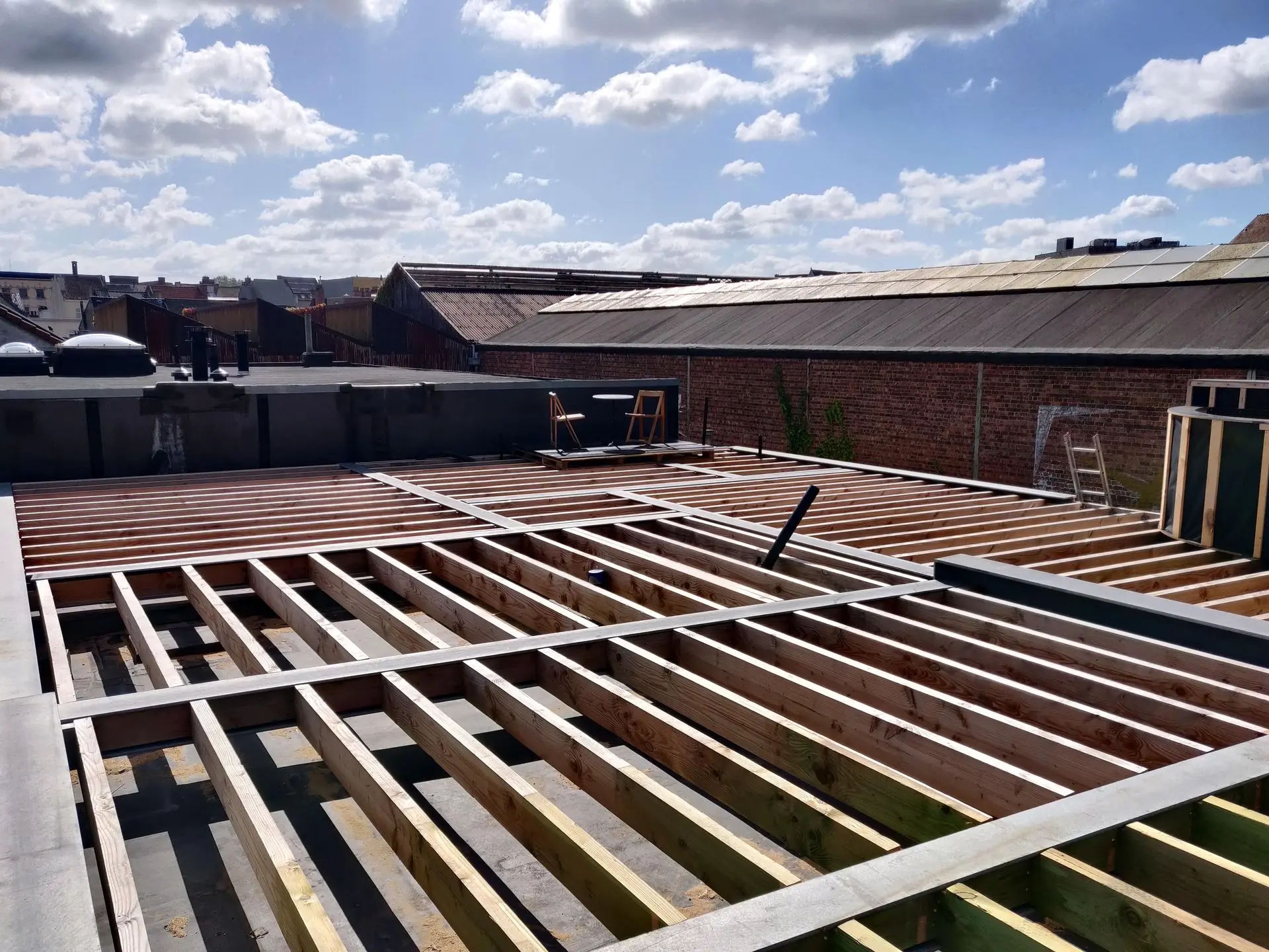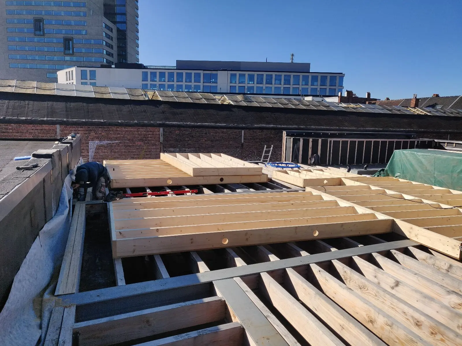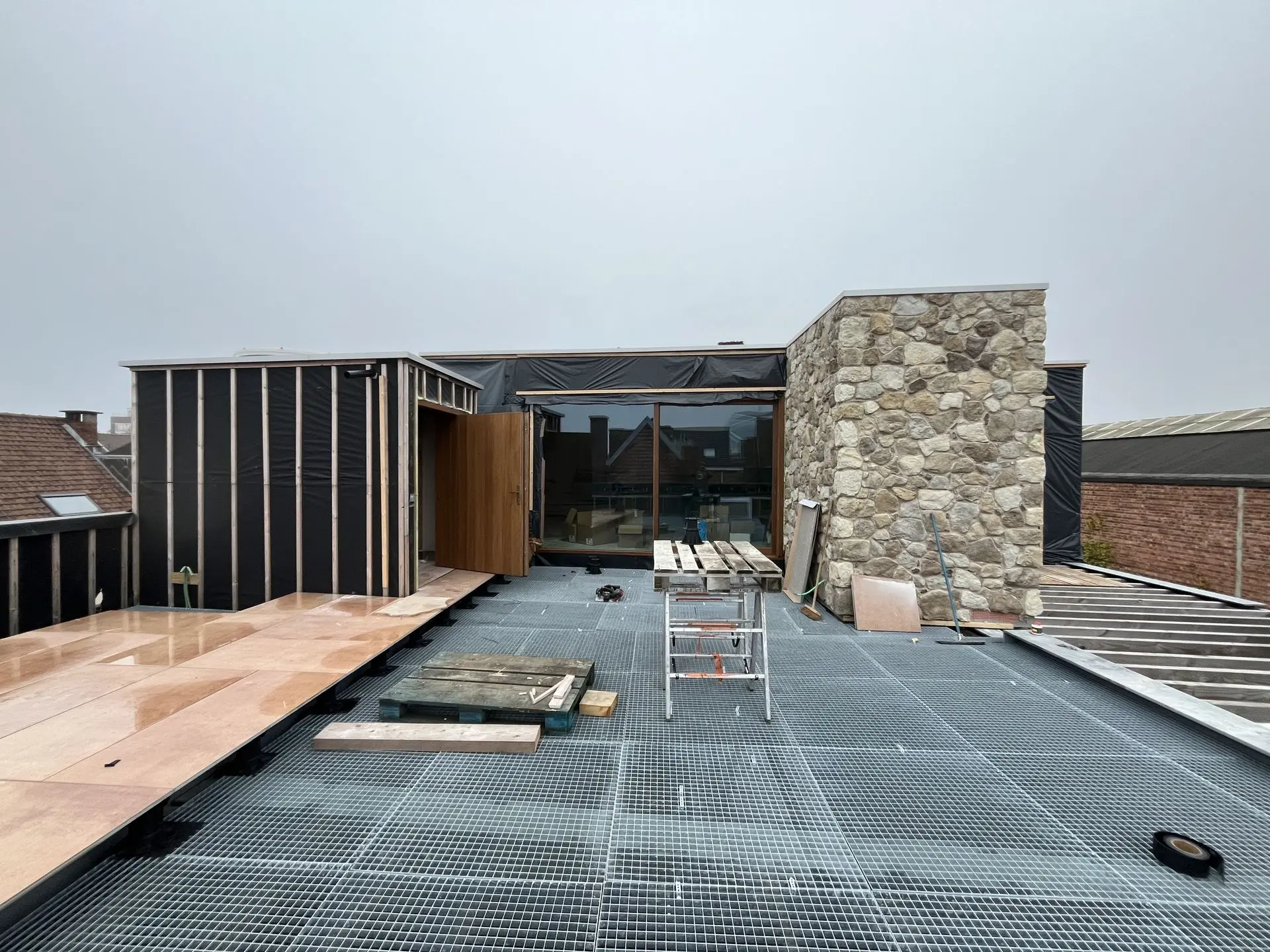 Hota voegde een extra verdieping toe aan een appartementsgebouw nabij het station, een project vol primeurs. We installeerden een groendak en werkten met een torenkraan.