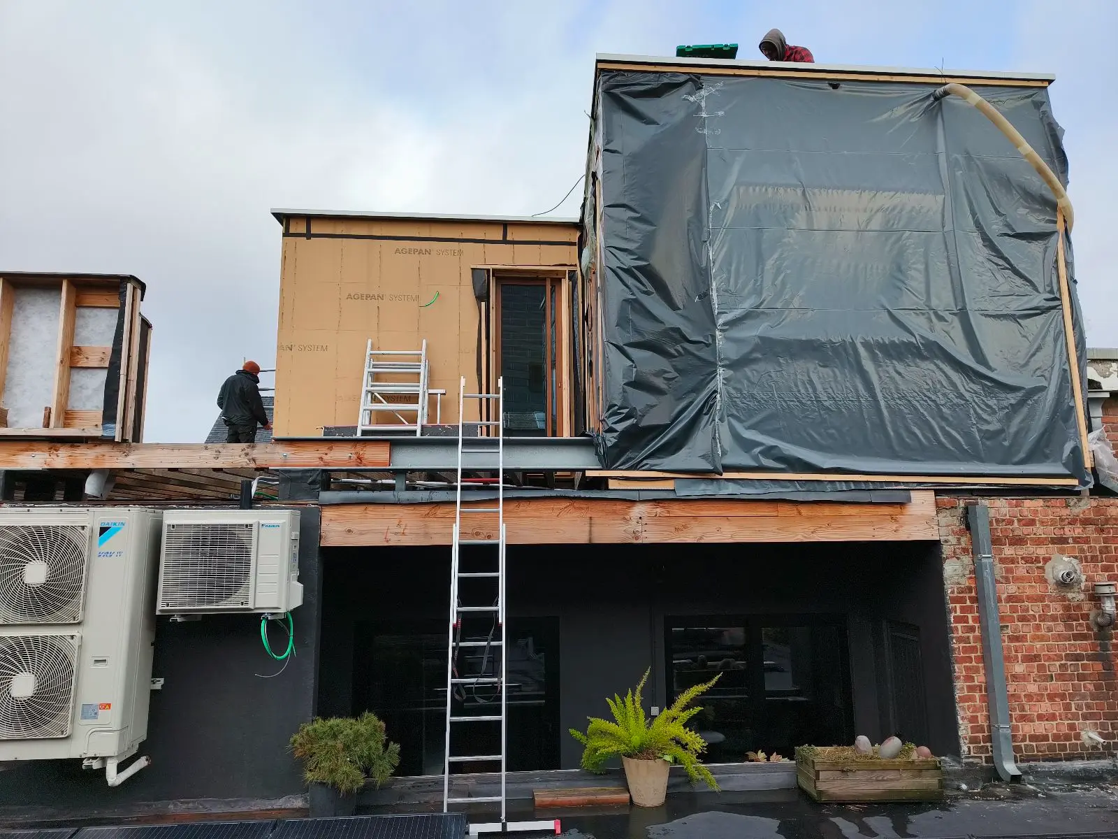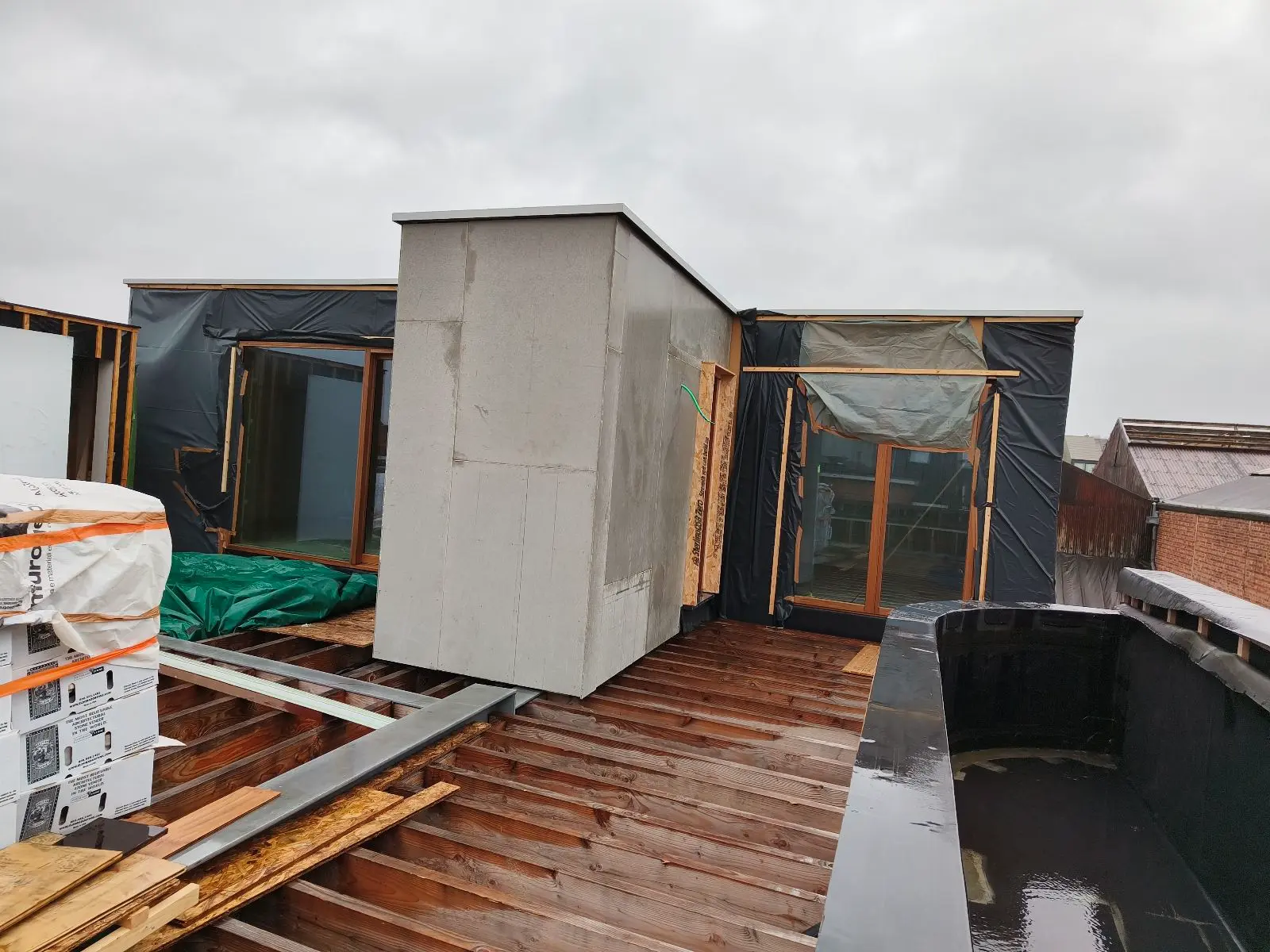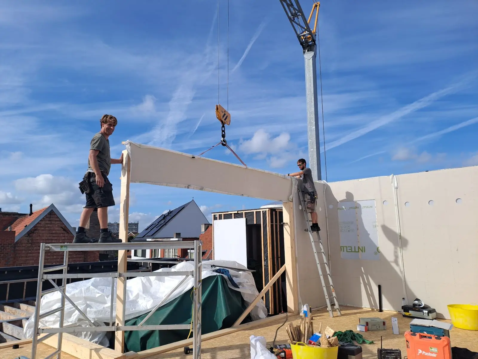 Hota voegde een extra verdieping toe aan een appartementsgebouw nabij het station, een project vol primeurs. We installeerden een groendak en werkten met een torenkraan.