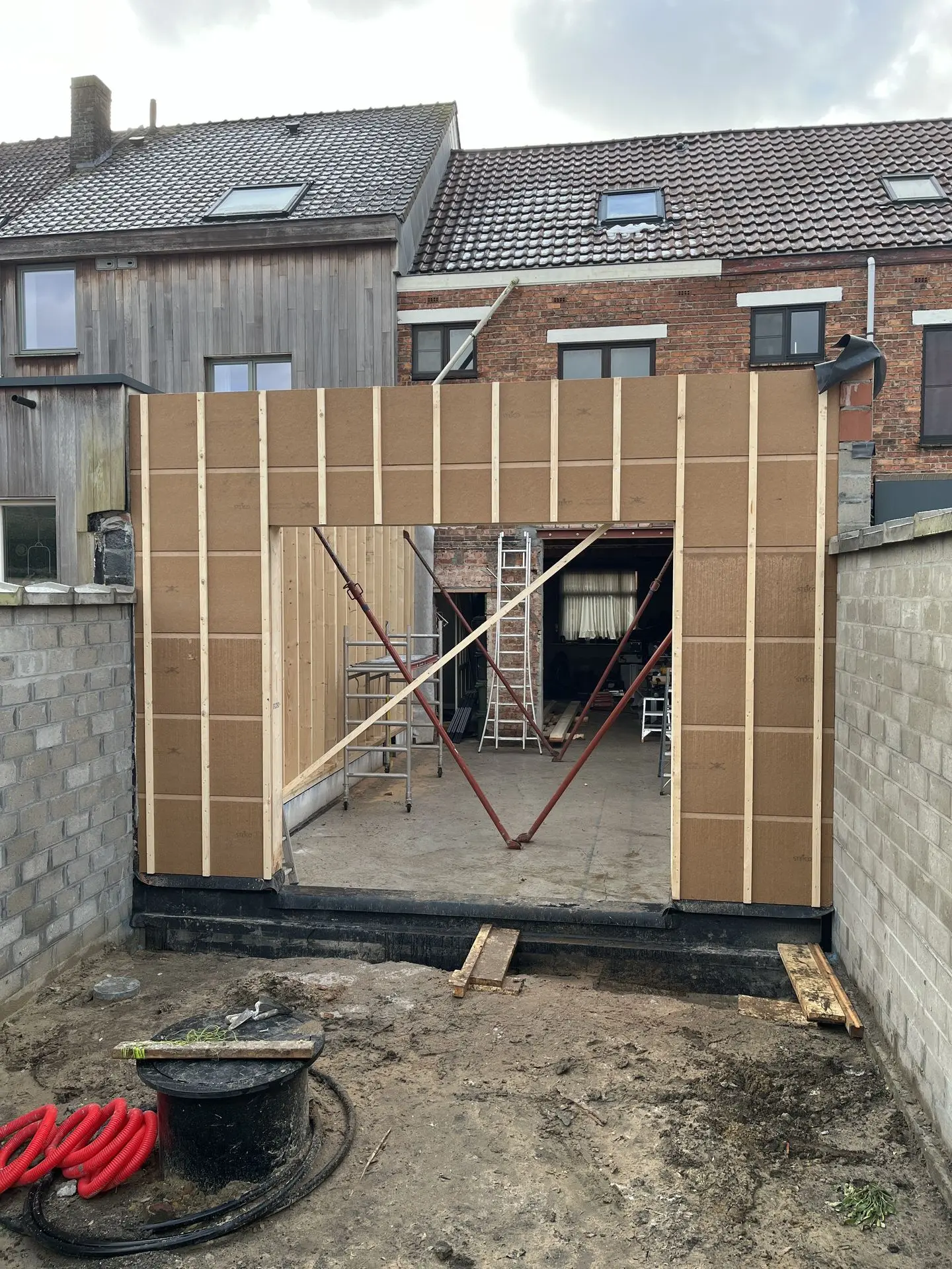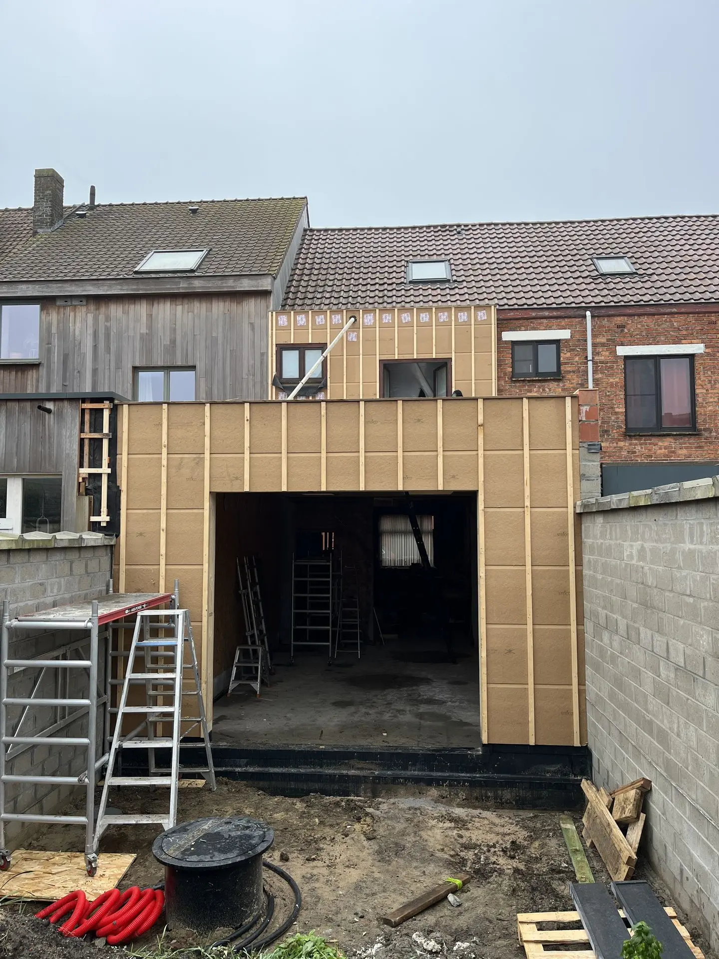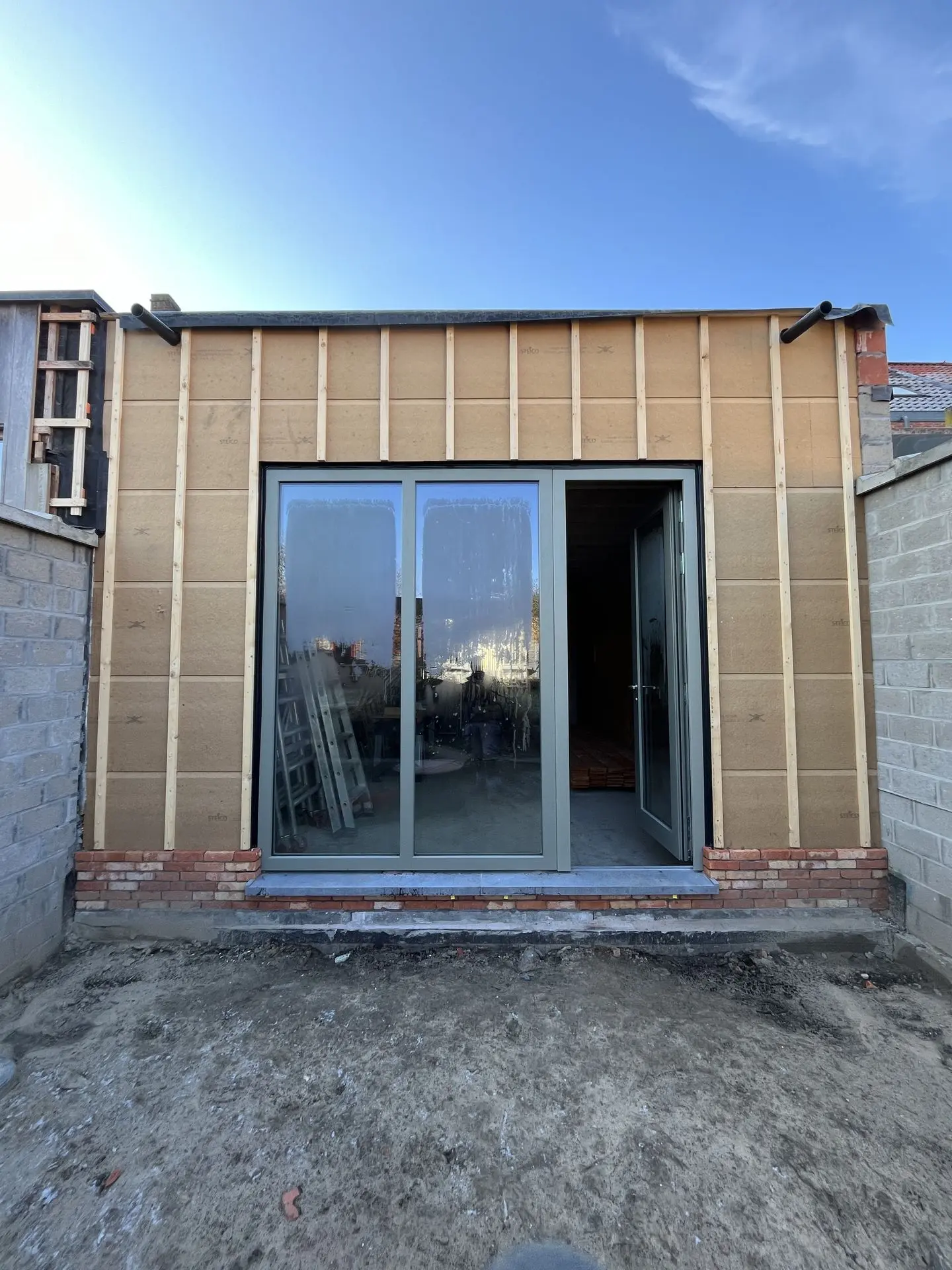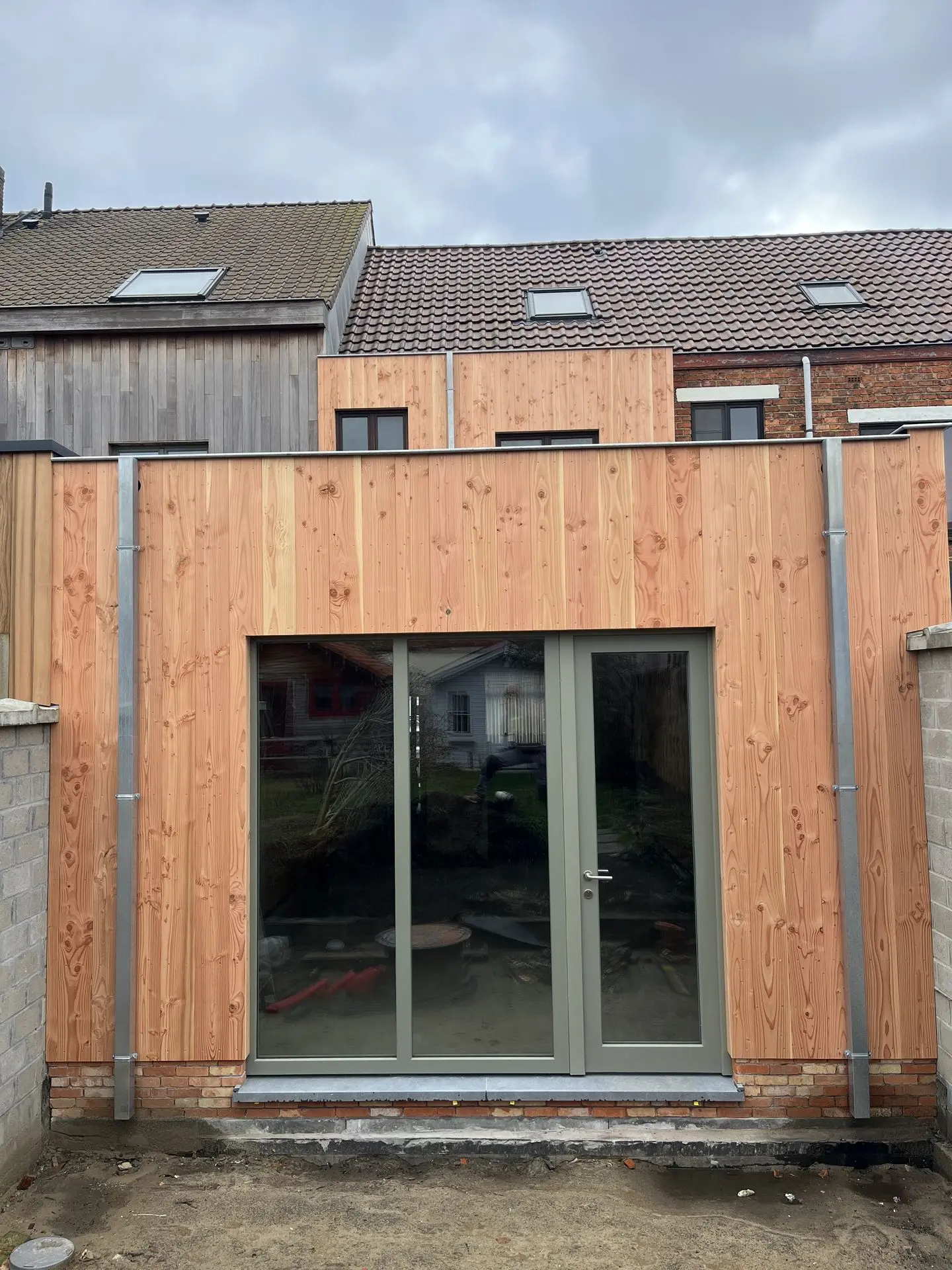 Ruime uitbouw in houtskeletbouw met houten gevelbekleding