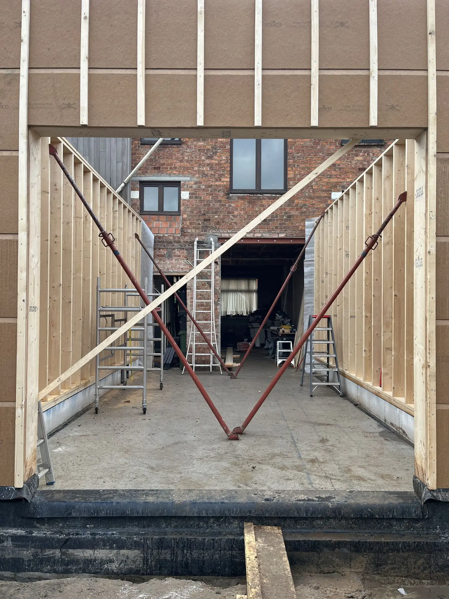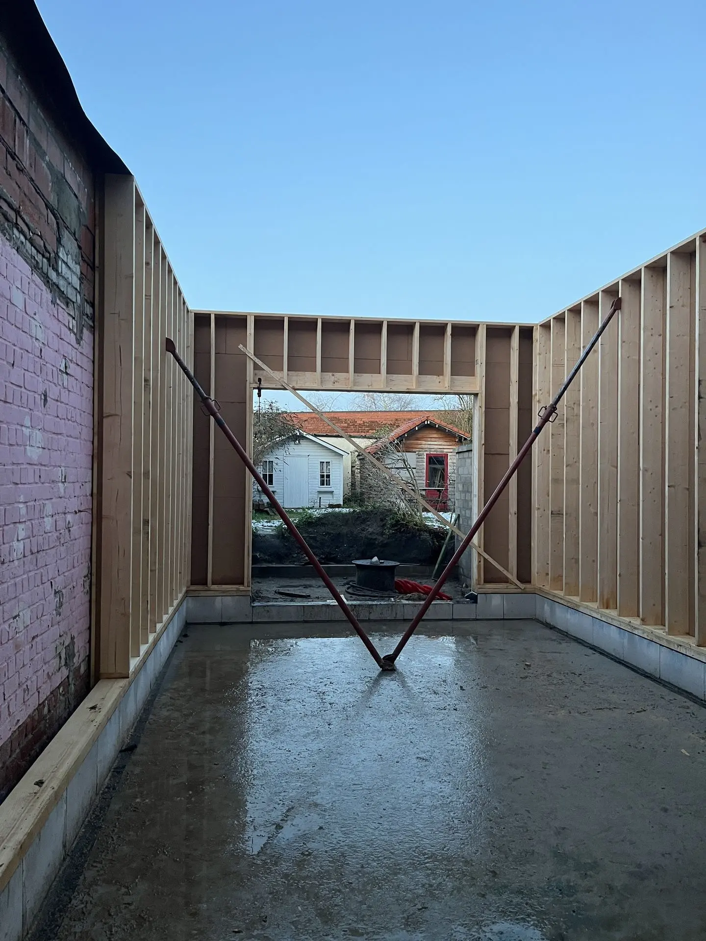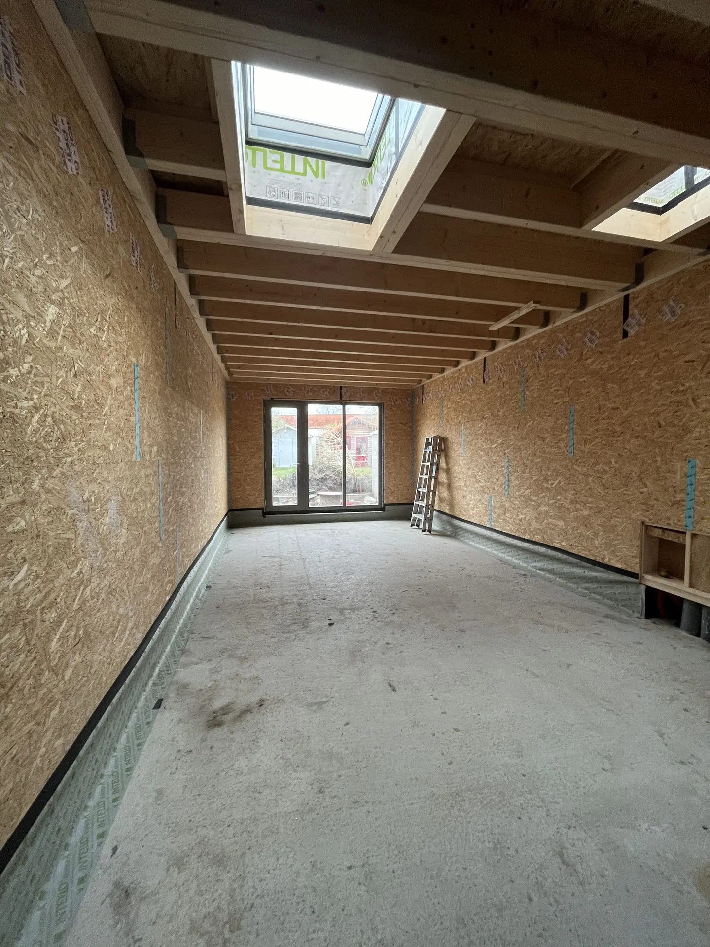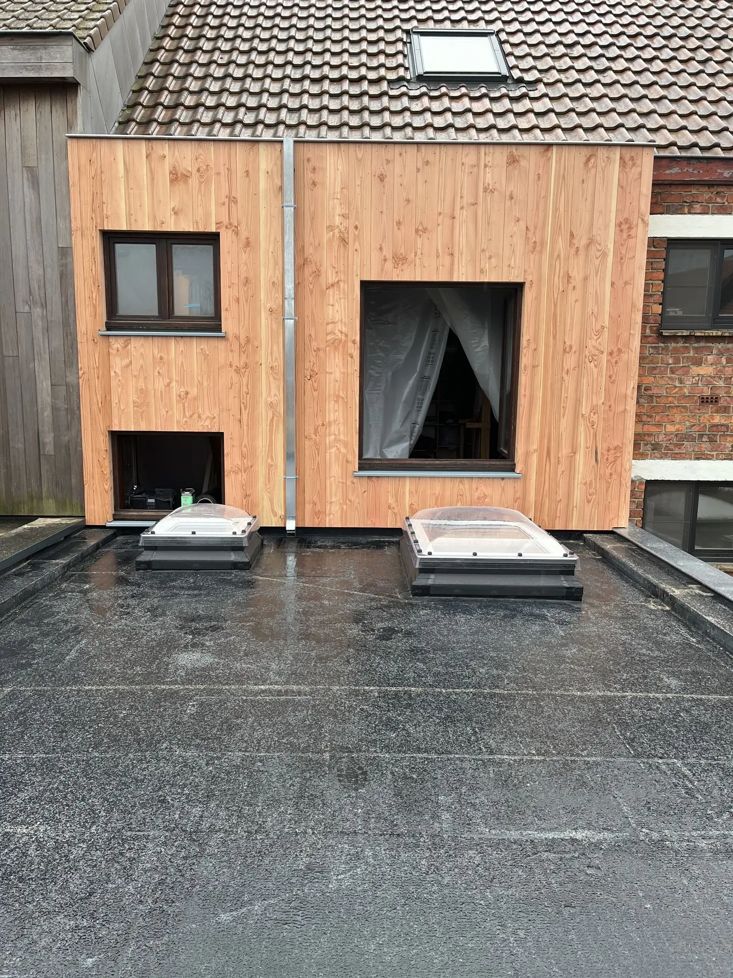 Ruime uitbouw in houtskeletbouw met houten gevelbekleding