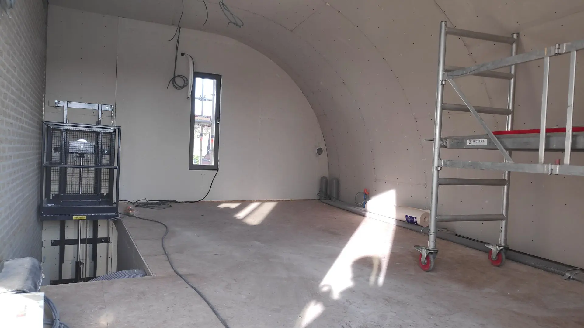 Voor een aquarellist plaatste Hota een uitbreiding op maat, met ons allereerste halfronde dak, een technisch en esthetisch unicum. De dakopbouw werd geïsoleerd met inblaasisolatie cellulose. Binnenin werd zelfs een lift voorzien voor het veilig transporteren van schilderijen.