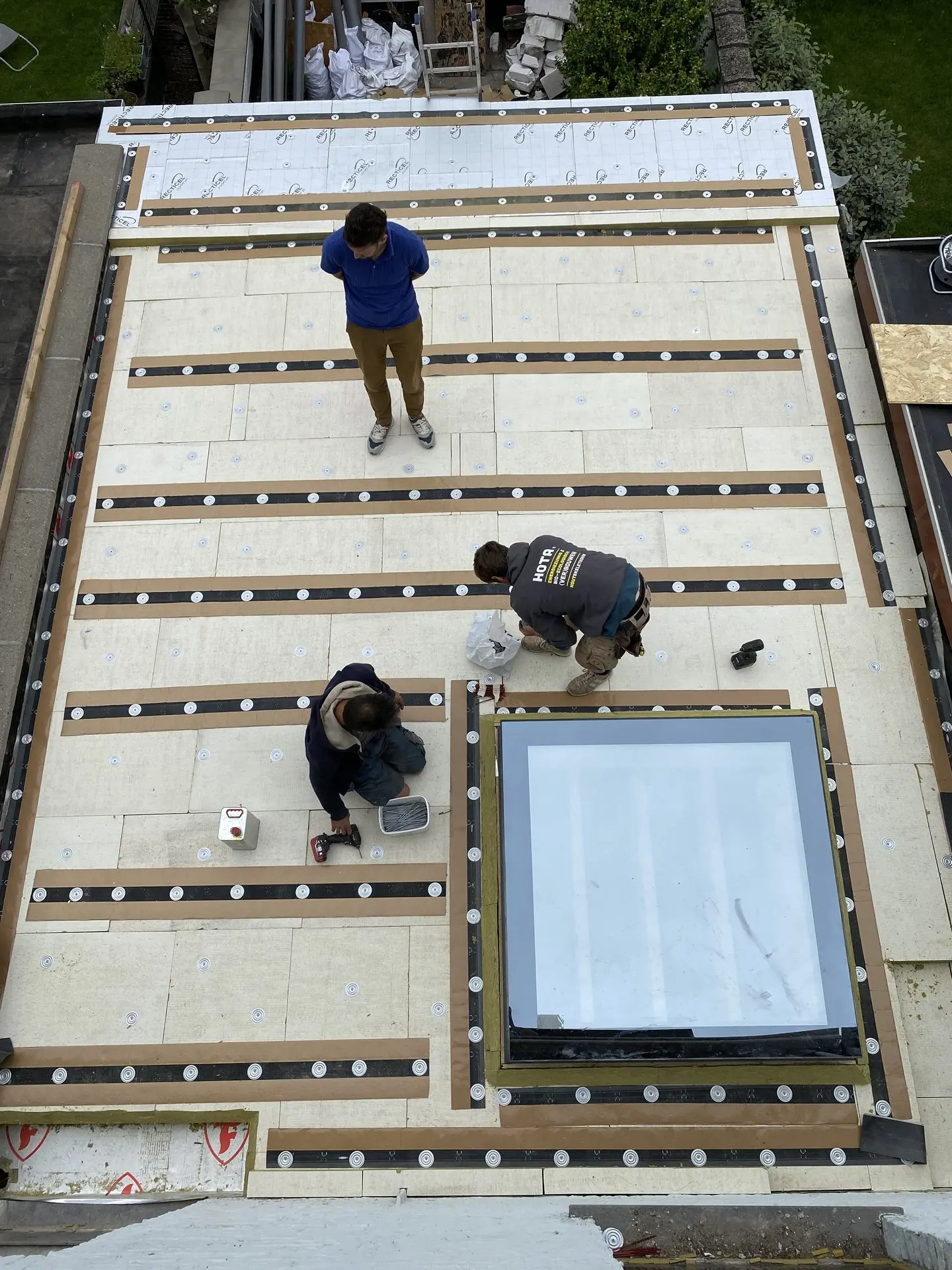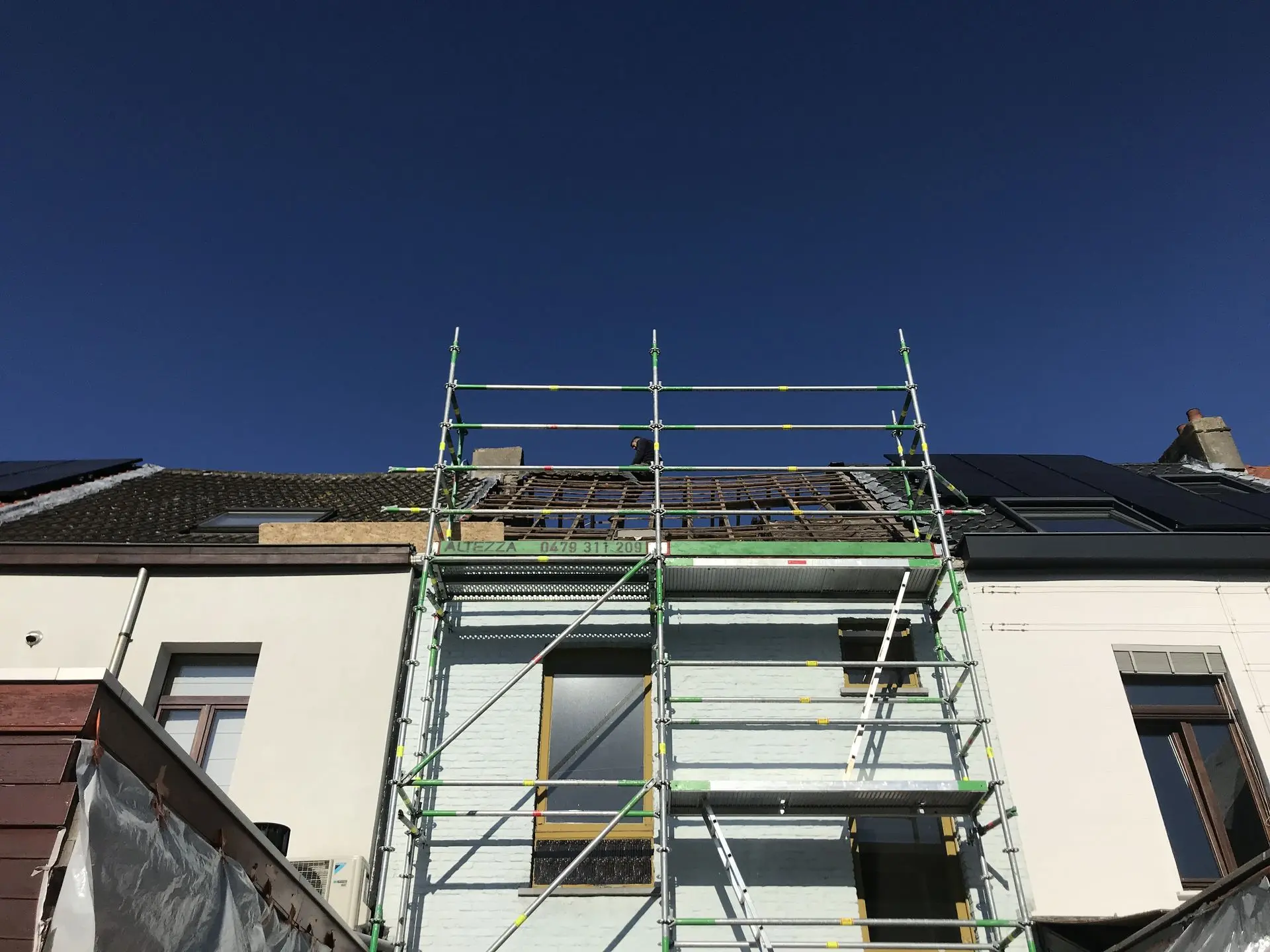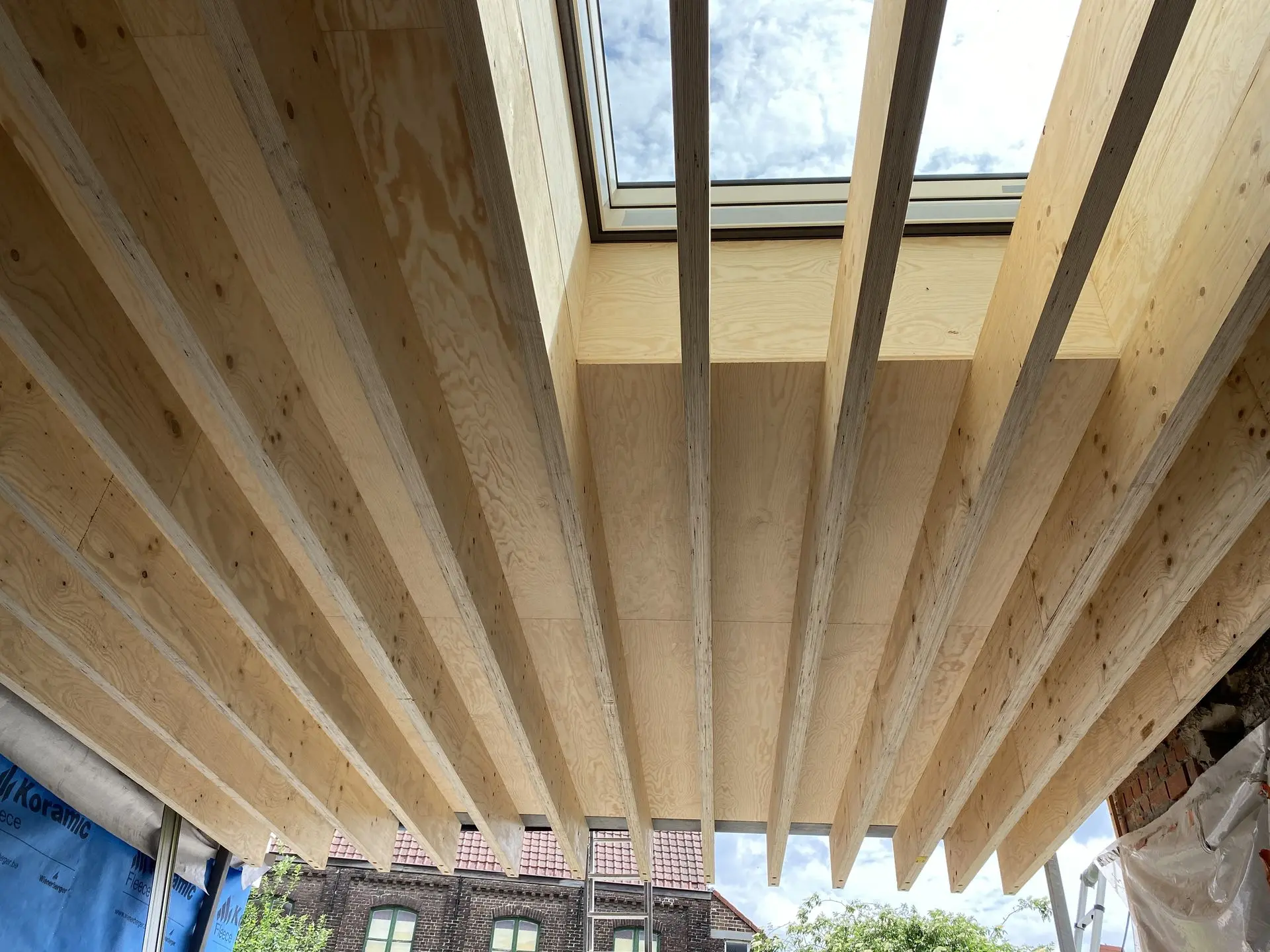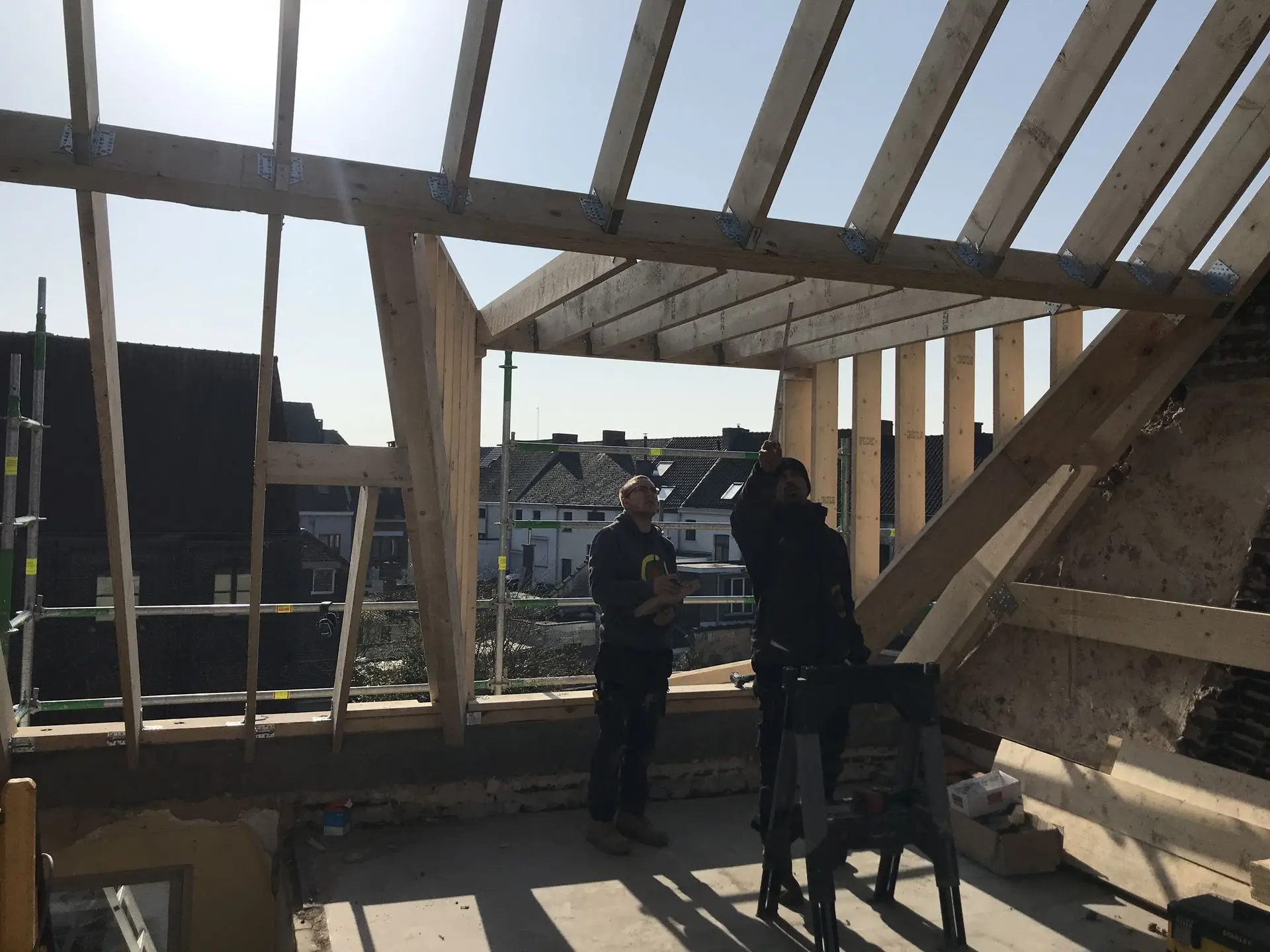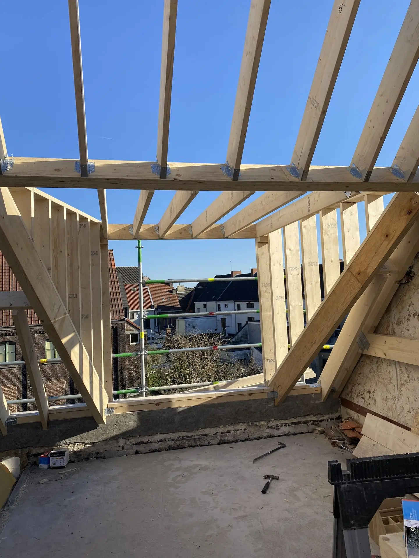 Sas is een totaalrenovatie waarvan Hota het dak en de uitbouw op zich nam. In deze burgerwoning staken we een nieuw dak met karaktervolle dakkapellen én een uitbouw met zichtbare balken. Het plat dak kreeg een Rhinnox-opbouw, geïsoleerd met ingeblazen cellulose.